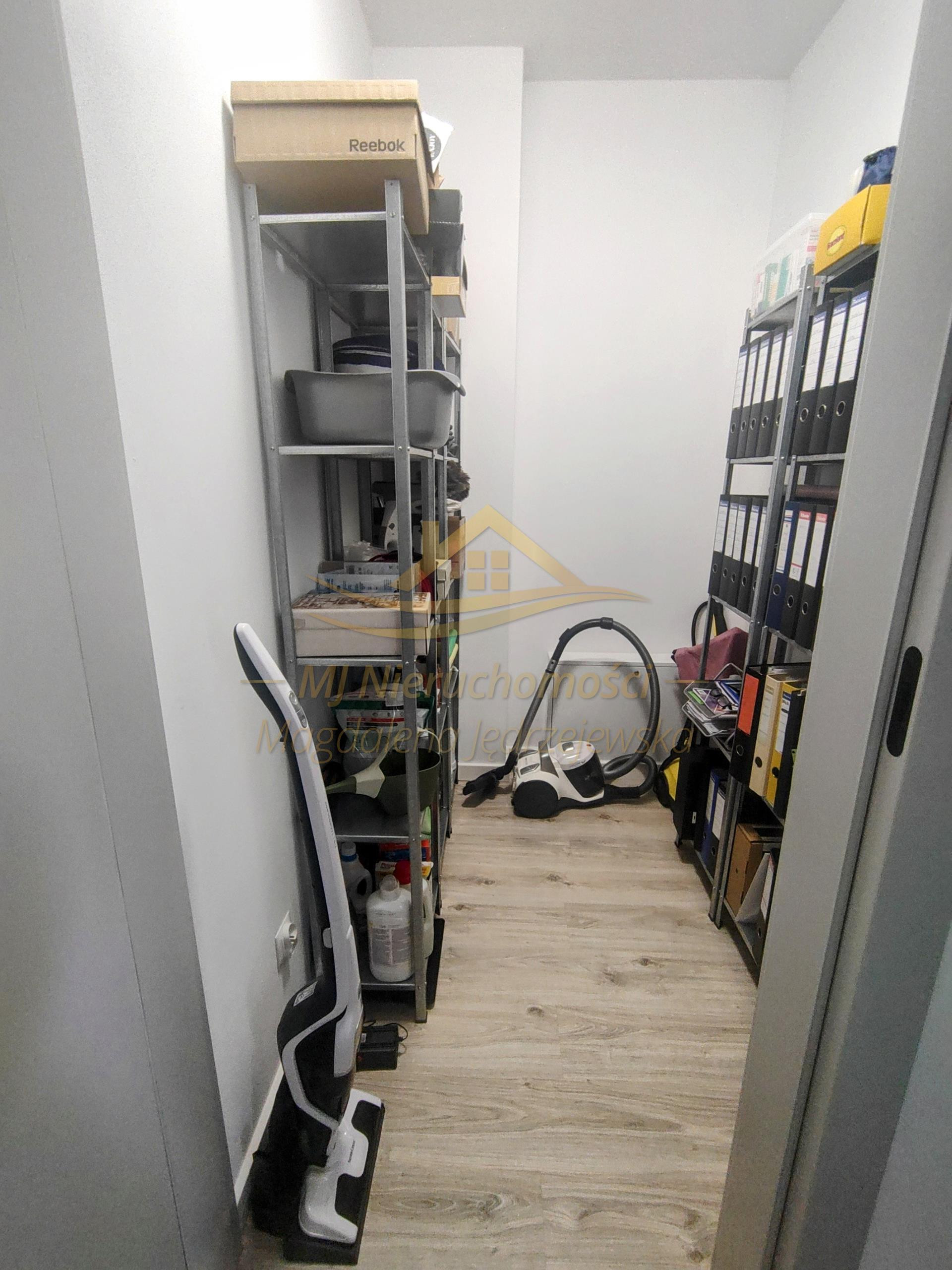 Poddasze wraz z pomieszczeniem do przechowywania, które zabudowane zostało w ścianie. Na podłodze panele.