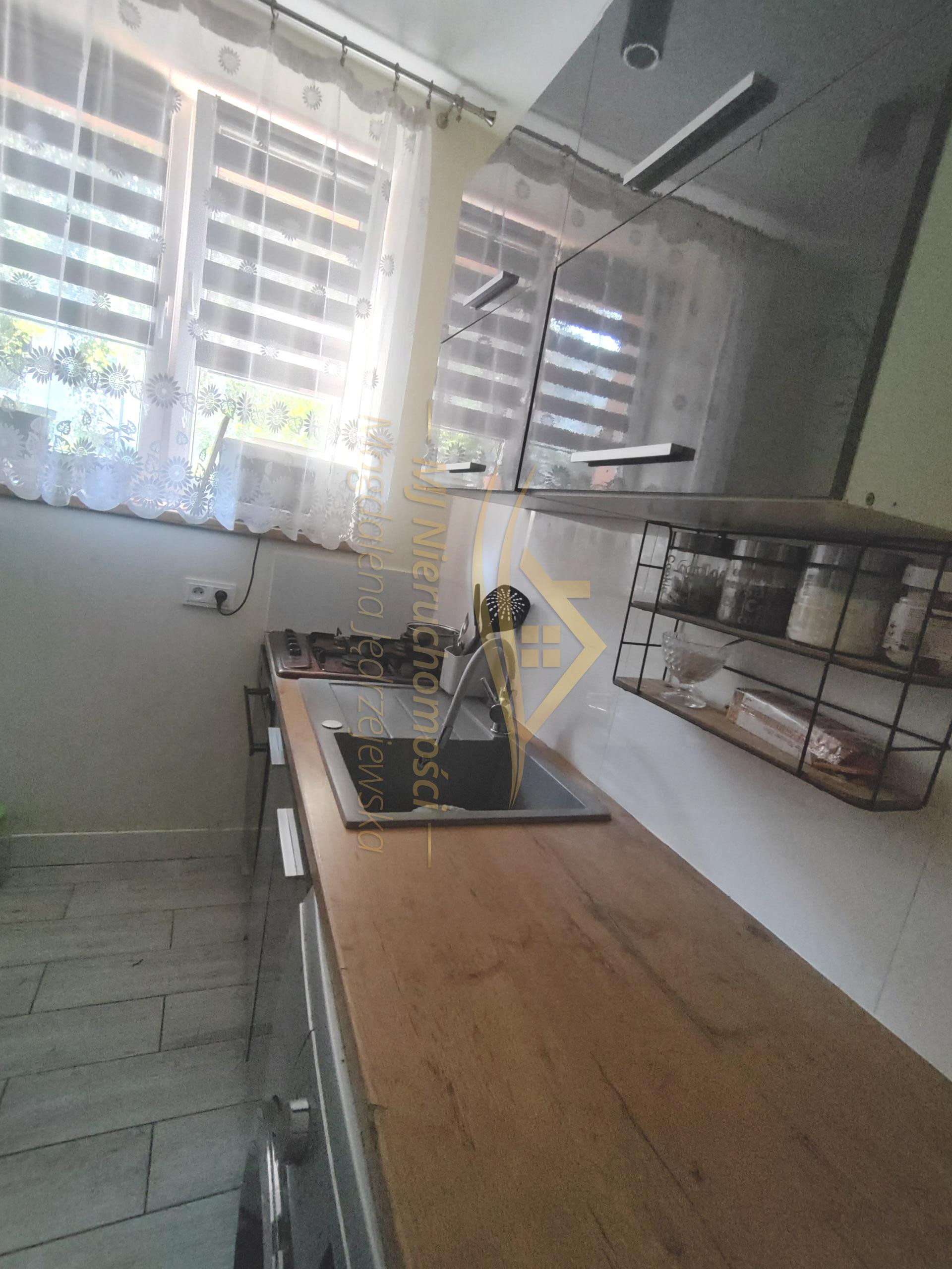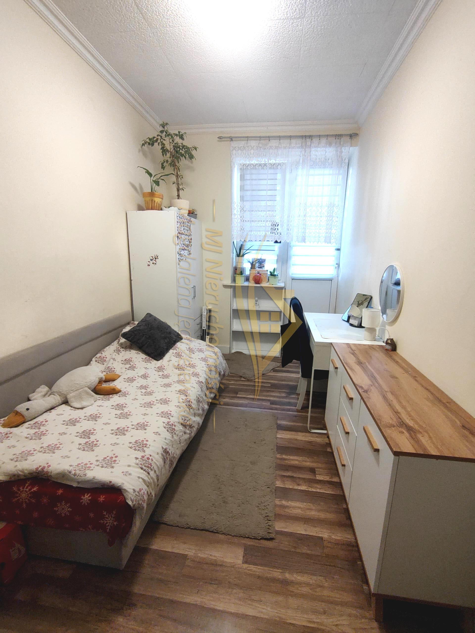 Okna PCV, wymieniona instalacja elektryczna i wodno-kanalizacyjna, na ścianach gładzie, na podłodze panele i płytki, łazienka w glazurze