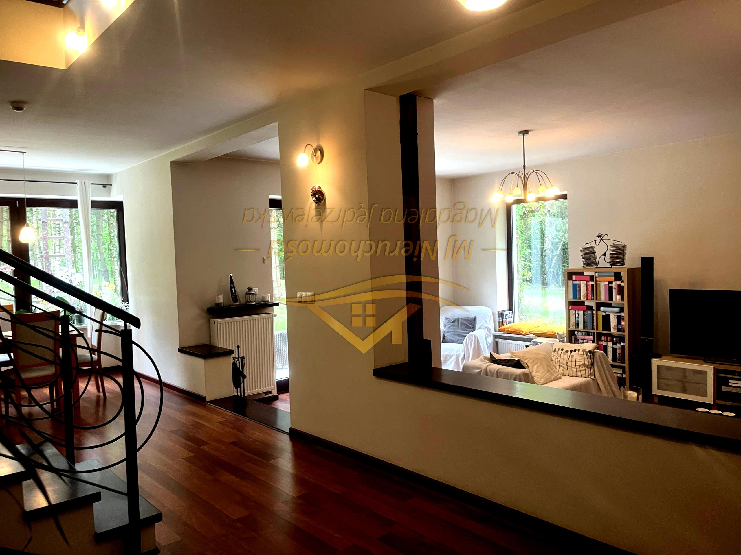 Na malowniczej działce o powierzchni 9000 m², położonej w otulinie lasu, usytuowany jest wyjątkowy dom o pow. 180m2, łączący komfort codziennego życia z bliskością natury.