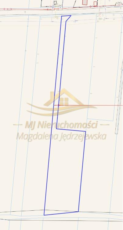 Na drodze wewnętrznej jest wpisana służebność do działki w trzeciej linii zabudowy.